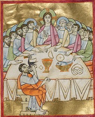 Egy másik 1030-1040-ben készült festményen is látható az utolsó vacsora asztalán az imára kulcsolt karokat ábrázoló perec